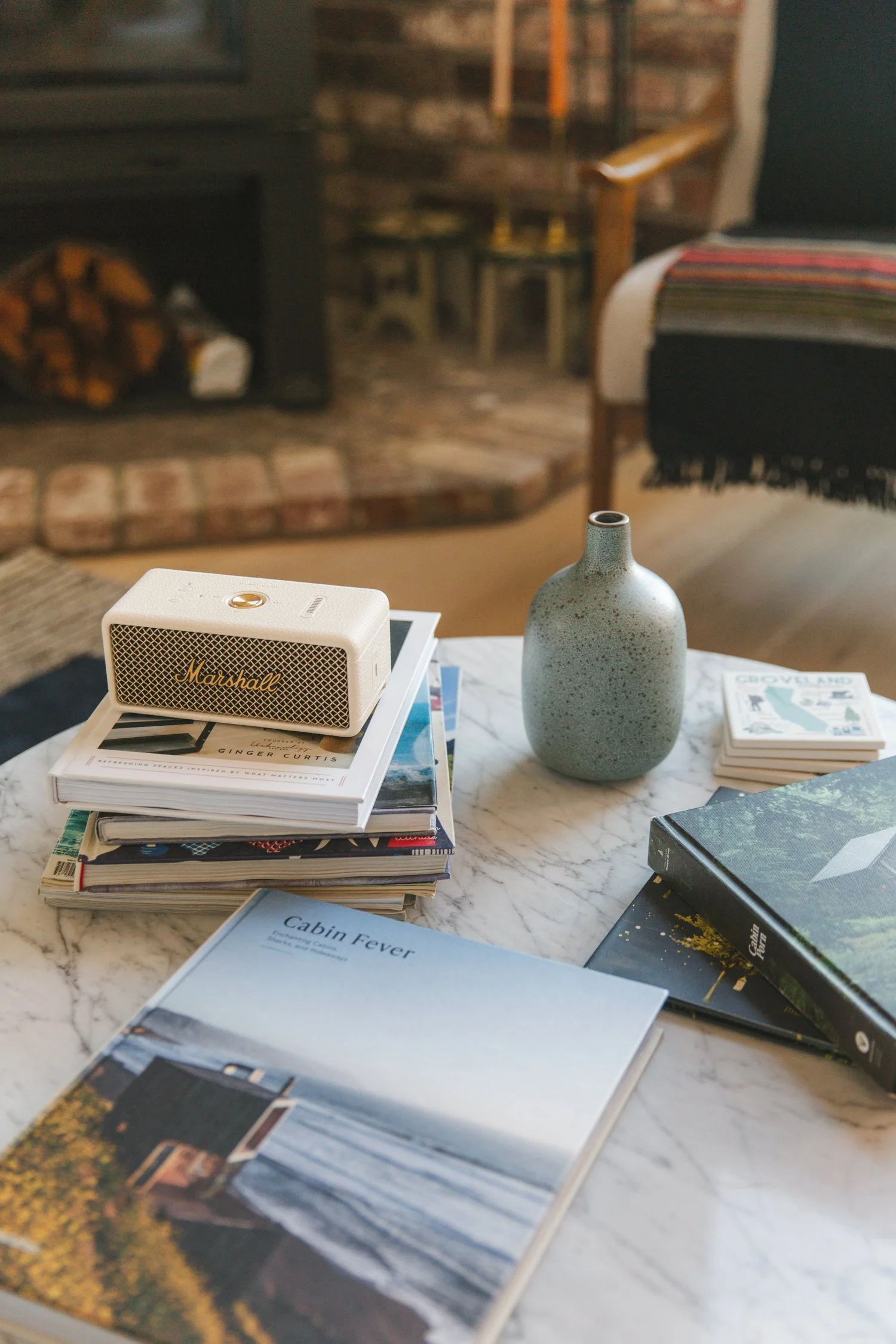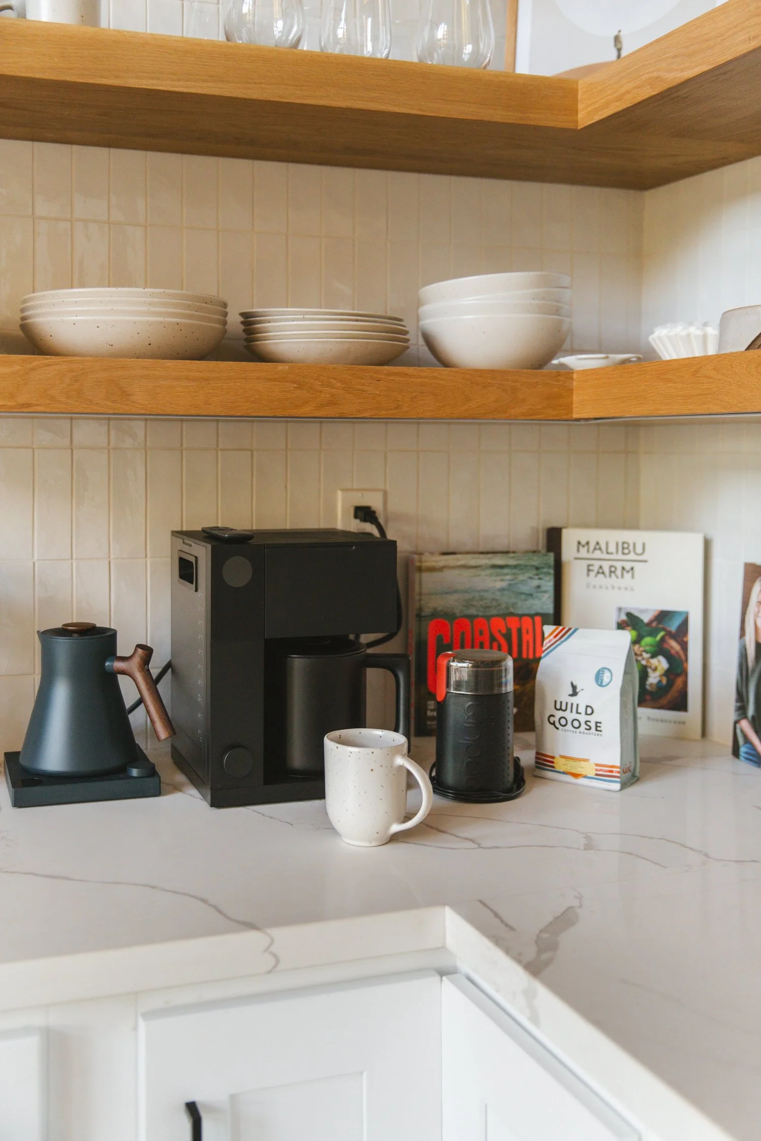 In the kitchen // we have done multiple projects using Cafe Appliances // Cafe offers great quality and style at a reasonable price point. Having lived with these products for many years with very few problems, they have become our go to for projects. // For coffee and tea we love using Fellow Products// Corvo EKG electric kettle warms up fast and holds your your set temp with an easy pour and ergonomic handle// Aiden Precision coffee maker makes pour-over quality coffee in minutes // Music & Sound// Our houses are set up with Sonos sound systems or we love to use Marshall portable speakers to sonically fill a space.