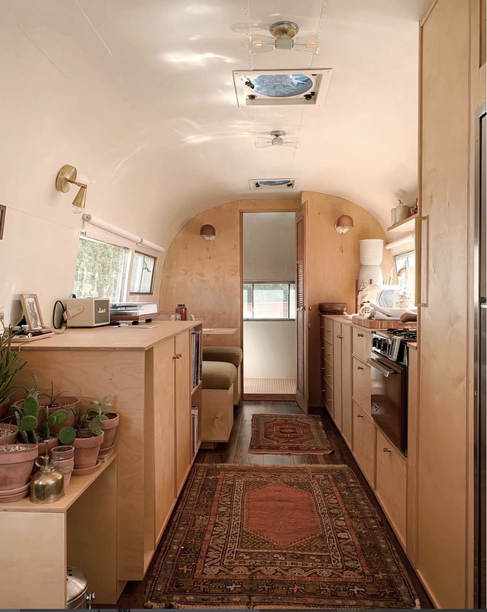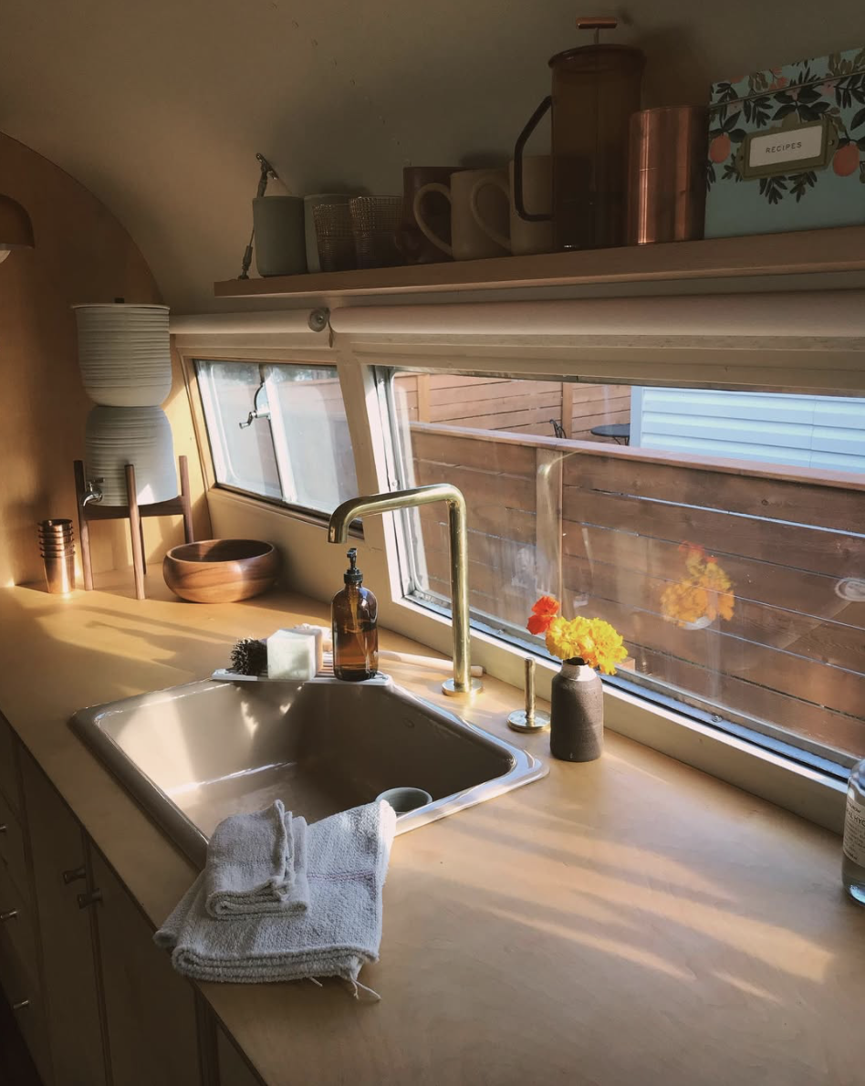 Restored and custom built by Ellen Prasse and Kate Oliver of The Modern Caravan, this 1958 airstream was purchased directly from them with the intention of having it sit atop a hill behind our VIEW HOUSE to overlook the Ojai Pink Moment on the Topa Topa bluffs.
